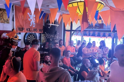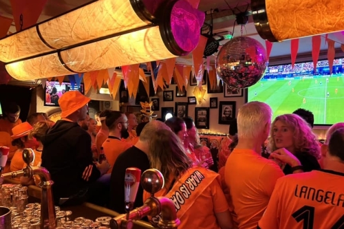 Hier wordt niet “ook voetbal uitgezonden”. Hier leeft het. Vanaf de eerste groepswedstrijd van het Nederlands elftal tot aan een mogelijke finale staat alles in het teken van Oranje. Het café kleurt mee. De sfeer bouwt zich op. En zodra het volkslied klinkt, voel je het door de hele zaak.